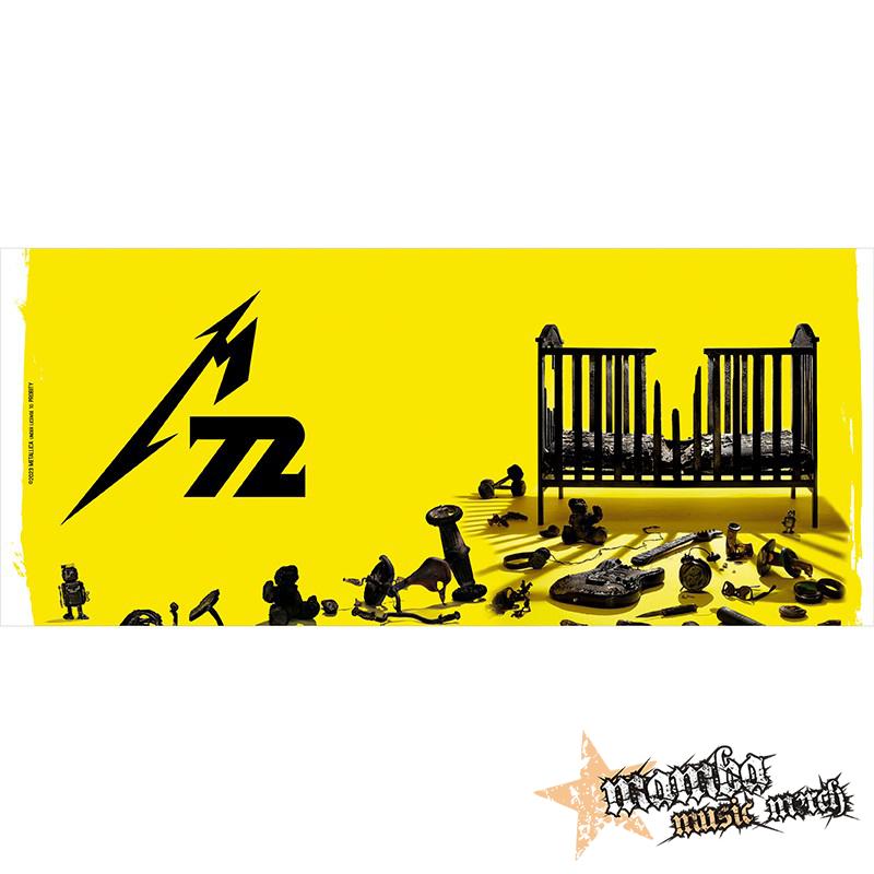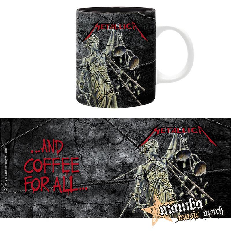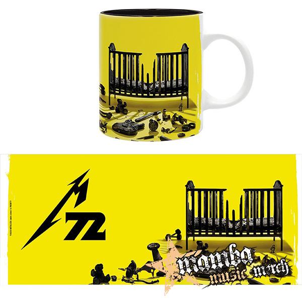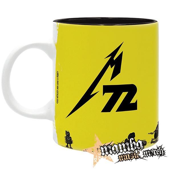 Biely keramický hrnček s motívom METALLICA. Hrnček má čierne vnútro.