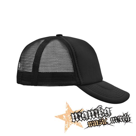 Trendová čierna 5 panelová šiltovka typu "trucker" s penovým povrchom, sieťovanou zadnou časťou a šiltom s penovým poťahom.
